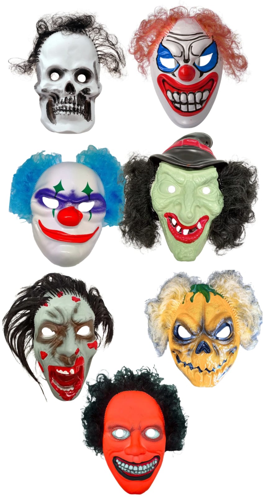 Calavera, Payaso terror, Clown, Zombie, Bruja, Calabaza, Espectro fluo